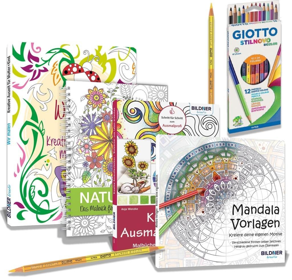 Mein Malset - 4 Malbücher mit 12 hochwertigen Duo-Farbstiften