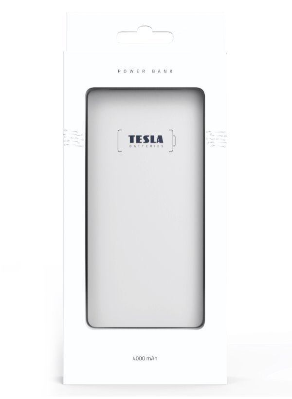 TESLA Power bank 4.000 SILVER/ 4000mAh/ micro USB kabel 5V/2,1A/ USB výstup 5V/2,1A/ Lightning adaptér/ Li-pol/ bílá