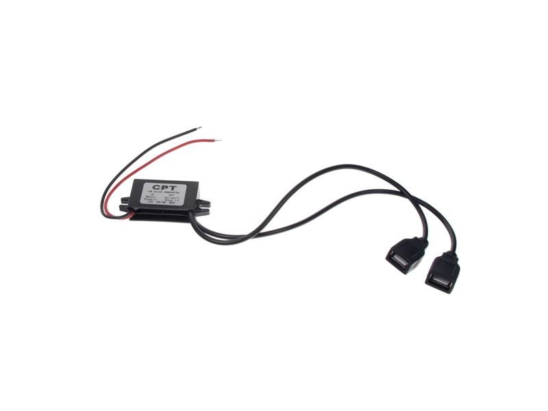 Měnič napětí umožňuje připojení dvou 5V spotřebičů s USB konektorem do vozidel s rozvodem 12 V. Vhodné např. pro stálé připojení např. DVR kamer, navigací, nabíjení telefonů, MP3 přehrávačů atd.