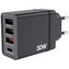 Verbatim USB nabíječka do sítě s celkovým výkonem 30 W a čtyřmi porty je ideálním pomocníkem pro nabíjení až čtyř zařízení současně. Díky kombinaci USB-C PD portu s výkonem až 20 W a tří USB-A portů, z nichž jeden podporuje rychlé nabíjení QC 3.0 až do 18 W, budete moci rychle a bezpečně dobít tablety, smartphony, herní konzole i další elektroniku. Kompaktní rozměry, elegantní černý design a pevná zástrčka EU z ní dělají výbornou volbu pro domácí i kancelářské použití, nebo na cesty.