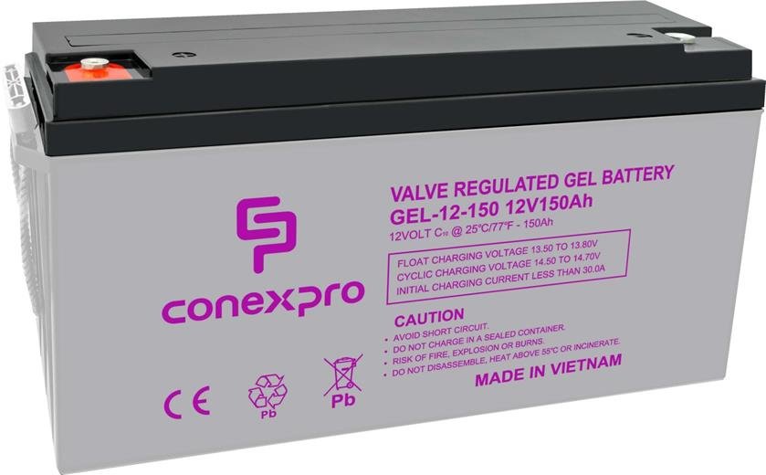 Gelová baterie Conexpro s výstupním napětím 12 V a kapacitou 150 Ah má širokou škálu využití. Použijete ji jako záložní zdroj a UPS, pro elektronické protipožární systémy, elektronické zabezpečovací systémy, nouzová osvětlení, napájení elektromotorů, telekomunikační zařízení nebo zálohování oběhových čerpadel či kotlů. Snoubí v sobě úžasný poměr výkonu a velikosti.