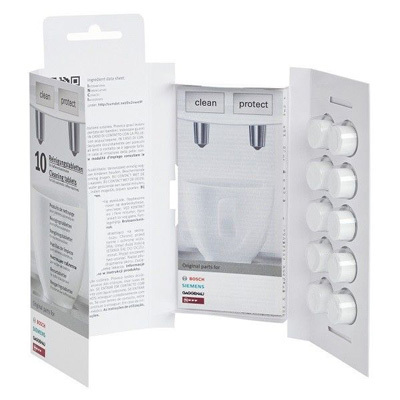 Čisticí tablety do kávovaru BOSCH / SIEMENS TCZ8001 10ks Bosch / Siemens TCZ8001 čisticí tablety do kávovarů (10 x 2,7 g tbl.) jsou vhodné pro automatické kávovary. Tablety prodlužují životnost přístroje díky lepšímu odstranění mastnoty z kávových zrn ze spařovací jednotky. Pravidelné čištění kávovaru napomáhá udržet skvělou chuť a aroma kávy.