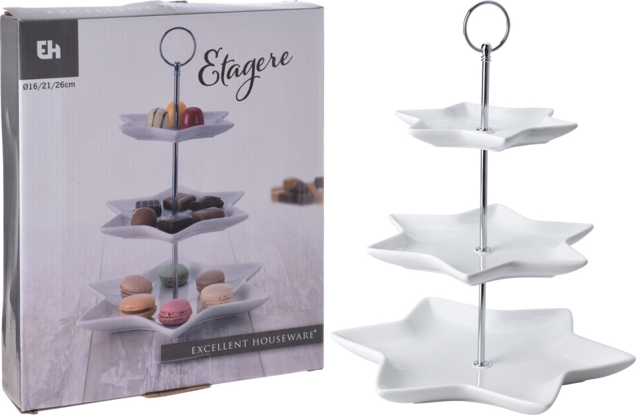 3 patrový porcelánový etažér ve tvaru hvězdy. Rukojeť pochromovaná.
