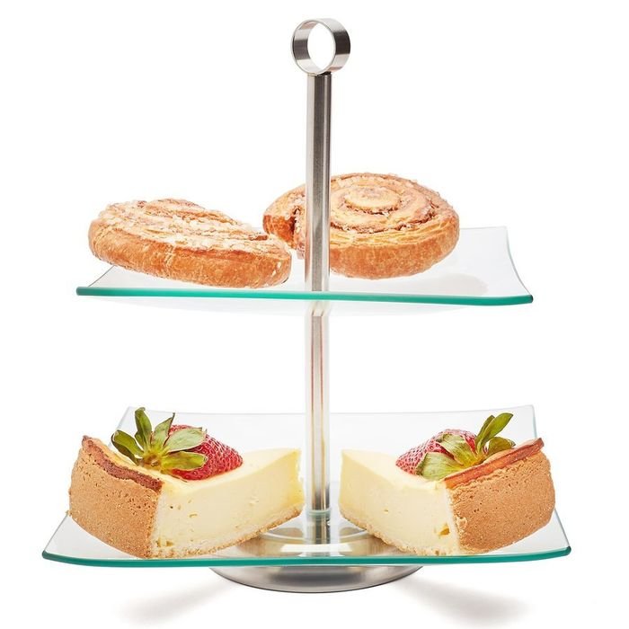 etažér 2patra, 20/25cm, čtver. MAGDALENA, sklo/Cr
