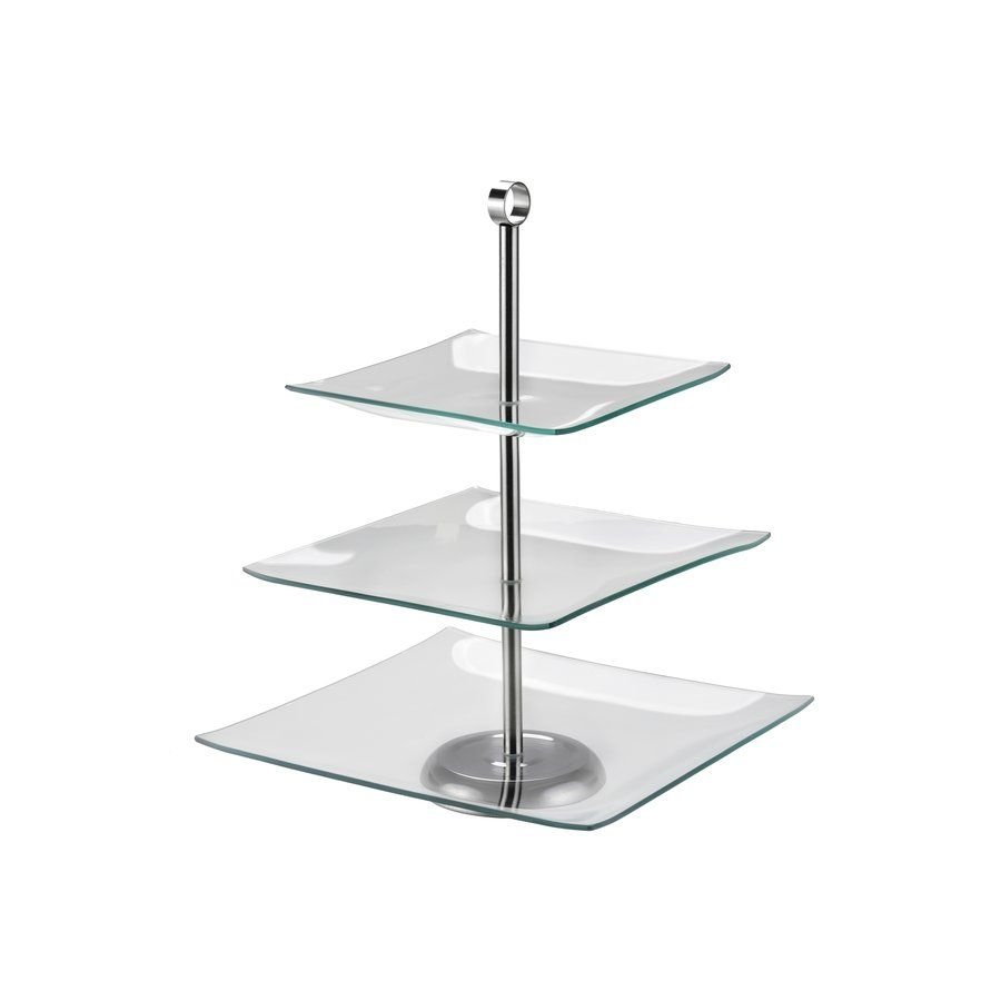 etažér 3patra, 20/25/29cm, čtver.VERONIKA, sklo/NR