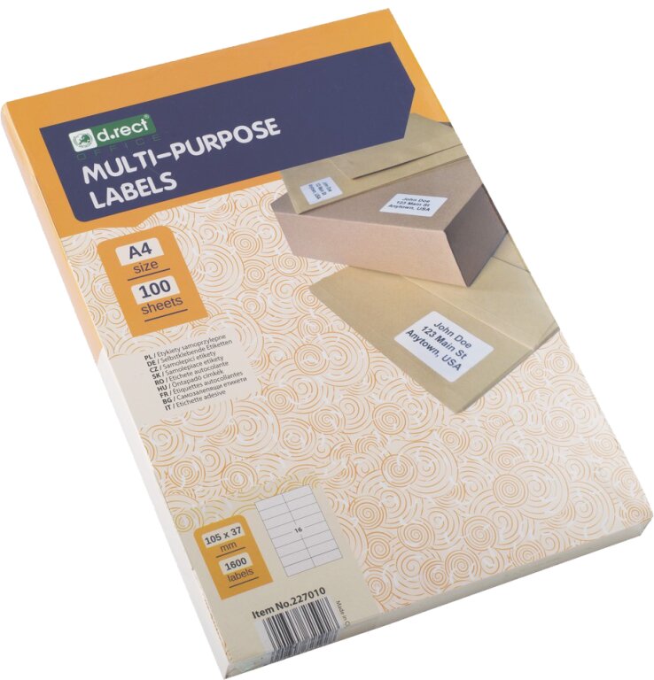 Ideální pro všechny laserové a inkoustové tiskárny, kopírky, barevné laserové tiskárny a barevné kopírky. Šetrné k životnímu prostředí. Štítky jsou 100% recyklovatelné pomocí odpadního papíru, recyklovatelný kartonový obal.