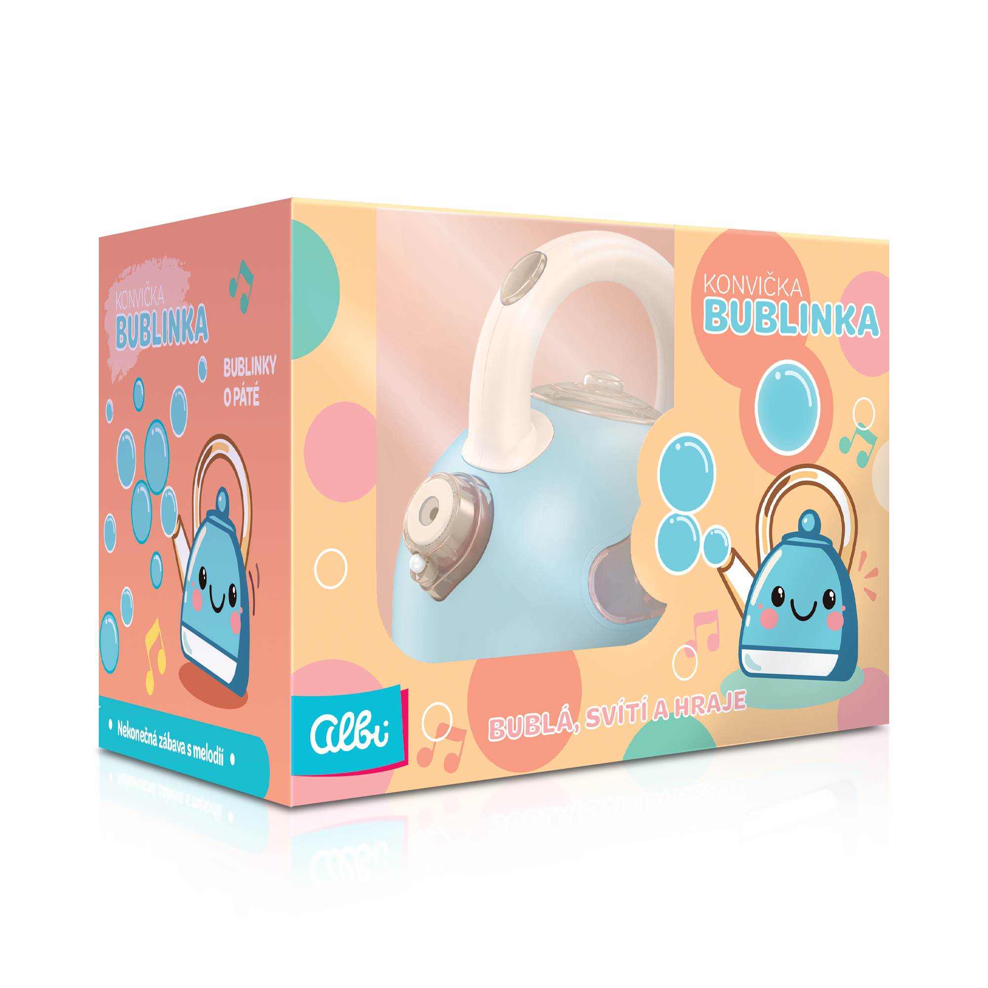 Konvička Bublinka funguje na 3 tužkové baterie (není součástí balení), po zapnutí začne blikat a vydává bublavý zvuk, který se promění ve veselou melodii. Z hrdla konvičky vyletují duhové bublinky, které okouzlí každého svou barvou a lehkostí. Díky jednoduchému ovládání a bezpečnému designu je bublifuk vhodný pro děti od 3 let, které tak mohou bezpečně prožít spoustu radostných chvilek.
