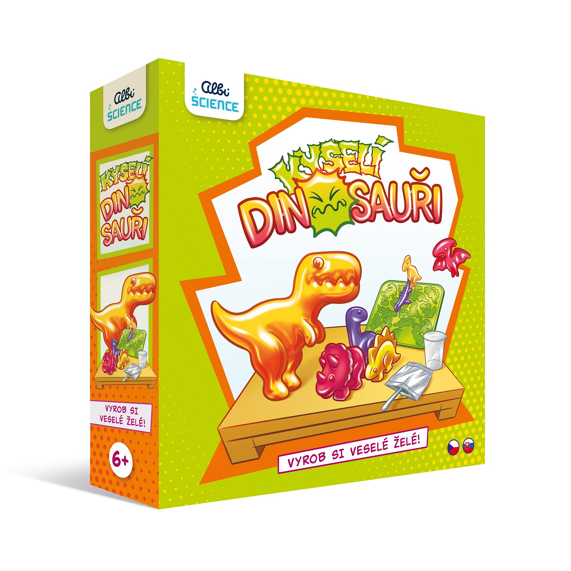 Sada Kyselí dinosauři je ideální pro malé experimentátory od 6 let, kteří si chtějí vyzkoušet výrobu gumových cukrovinek doma. Obsahuje všechno potřebné - příchutě třešně, limetky a hroznového vína v pestrých barvách, želatinový prášek pro správnou konzistenci a silikonovou formu ve tvaru dinosauřích postaviček. Hotové bonbony lze krásně zabalit do dárkových pytlíků, které si děti samy ozdobí pomocí přiložených samolepek. Praktické pomůcky jako lžička, kádinka a papírová brčka usnadní celý výrobní proces, navíc vše doprovází podrobný návod.