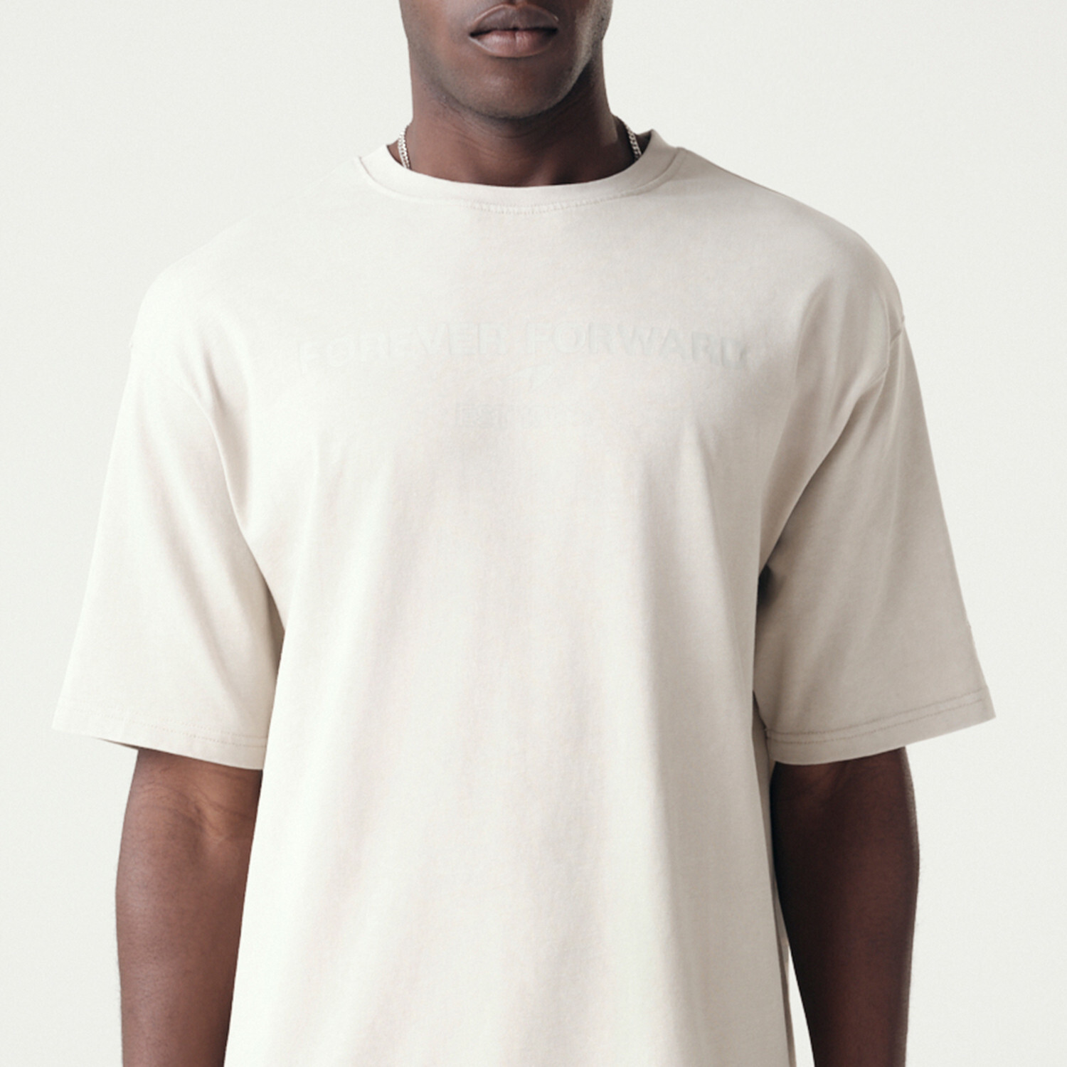 Písková barva trička McLaren F1 z nové kolekce New Era doplněné designem speedmark. Nápis Forever Forward a logo McLaren F1 na boku.