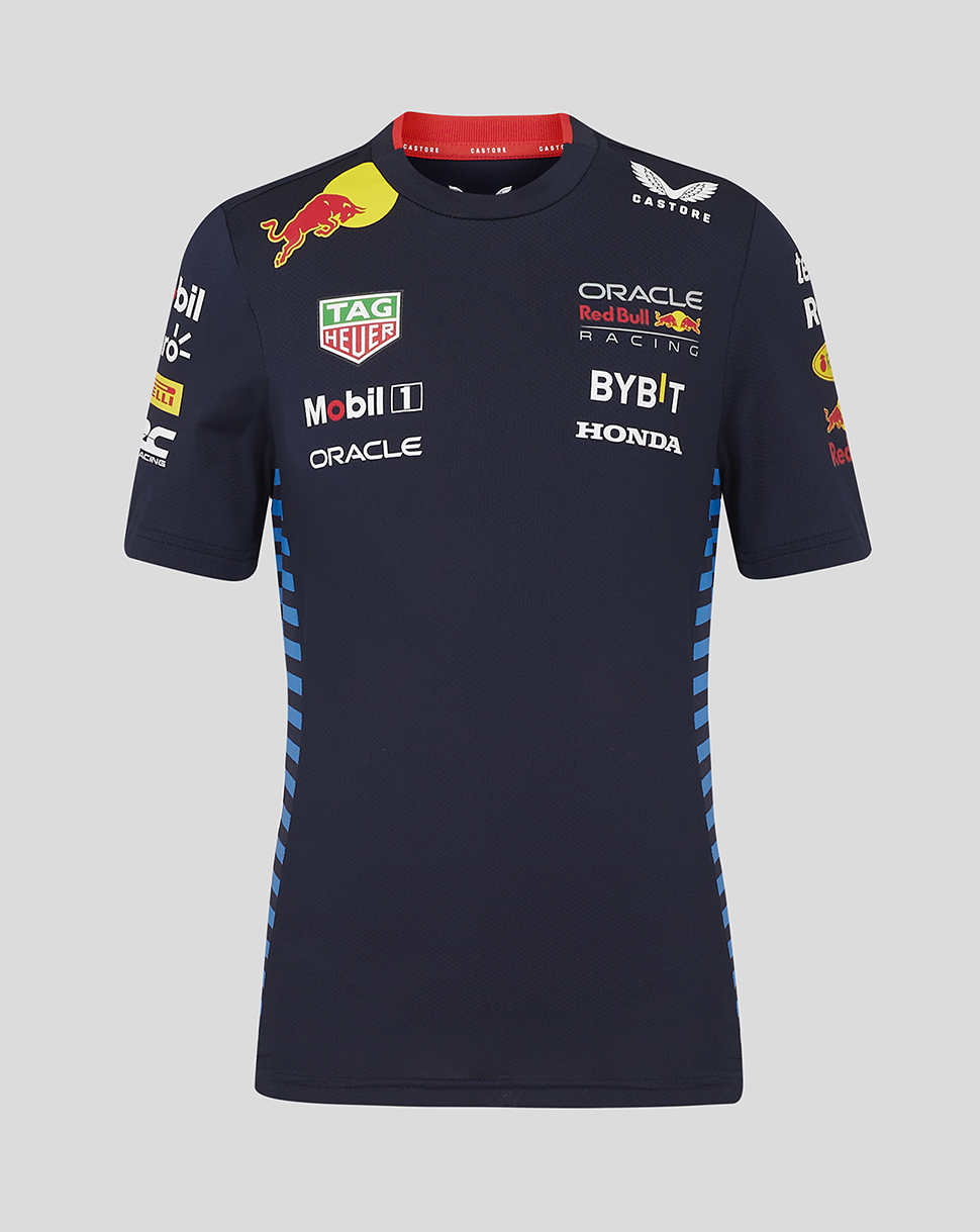 Dětské týmové tričko Red Bull Racing F1 nošené jezdci a členy týmu v sezóně Formule 1. Dětské tričko Red Bull Racing F1 doplněné logy sponzorů od výrobce Castore. Pohodlné na nošení, krásné barvy.