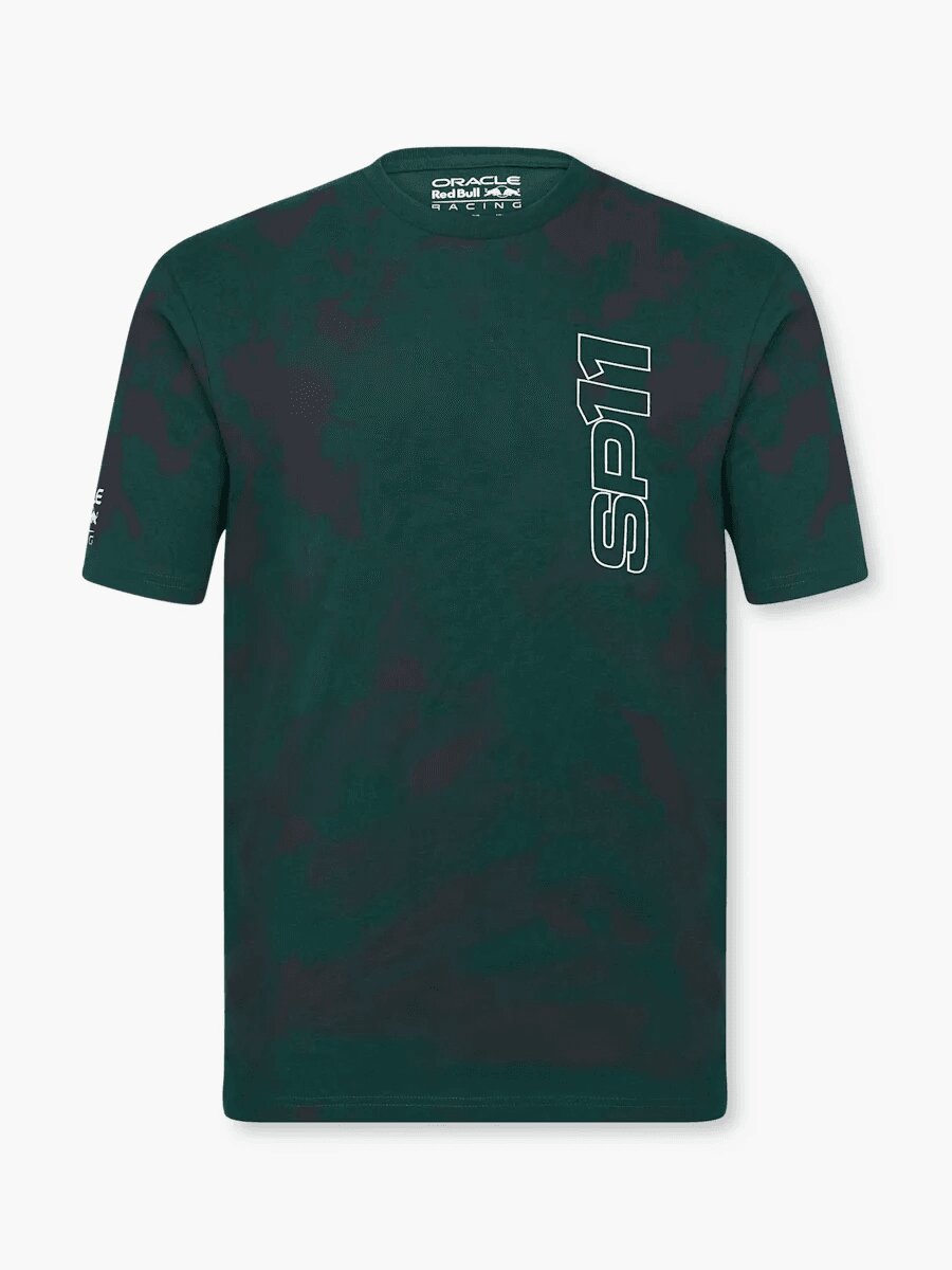 Pánské tričko Sergio Perez z nejnovější kolekce pro sezónu 2023. Tmavě zelené tričko doplněné logy Oracle Red Bull Racing a Sergio Perez. Triko Sergio Perez Red Bull Racing F1 tmavě zelené. číst celé