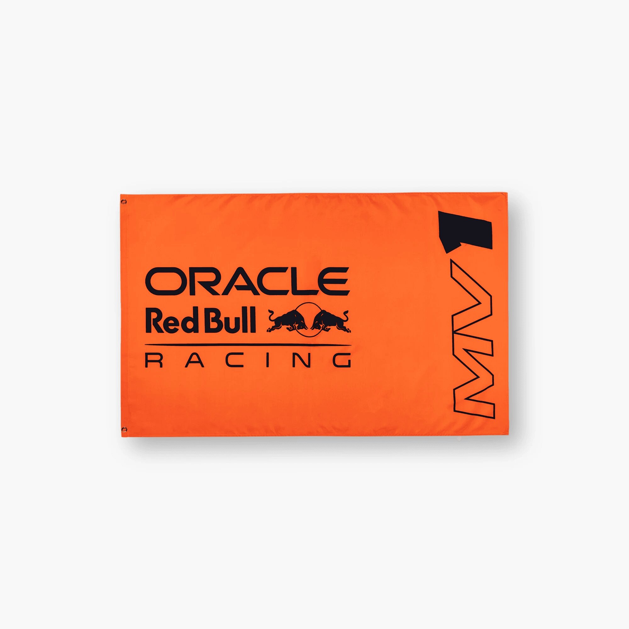 Stylová vlajka Max Verstappen k příležitosti sezóny F1. Stylová vlajka doplněná velkým logem Maxe Verstappena. Vlajka Verstappen Red Bull F1.