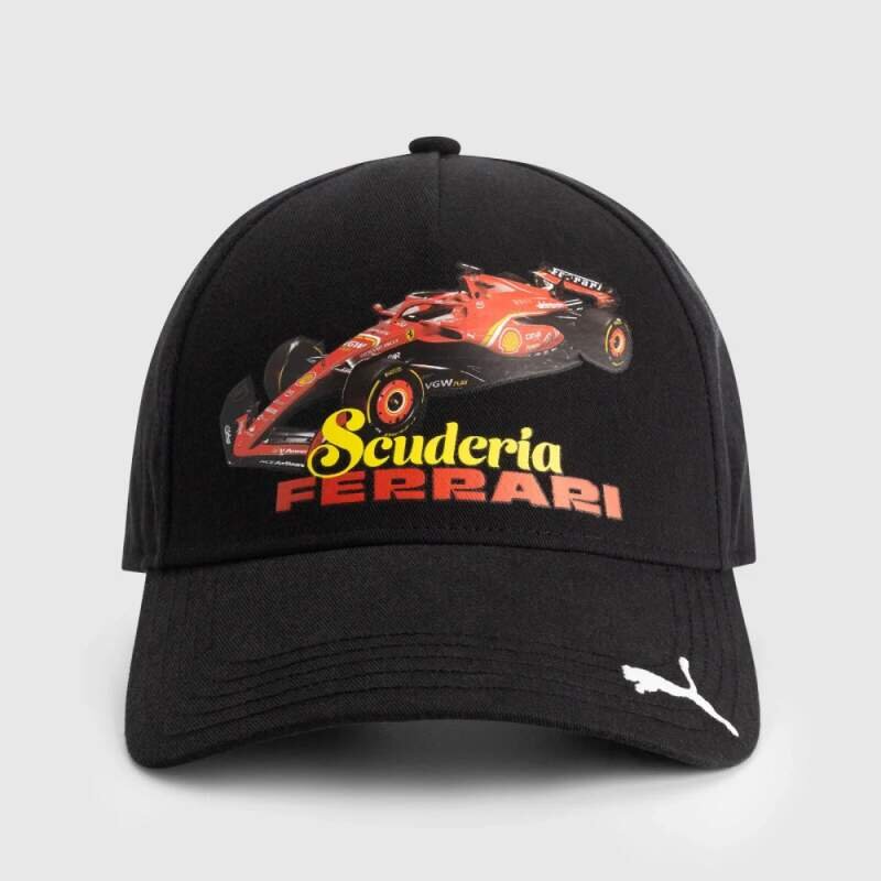 Černá kšiltovka Scuderia Ferrari s impozantním motivem vozu Formule 1 je ideálním doplňkem pro všechny fanoušky tohoto legendárního týmu. Nejenže skvěle vypadá, ale také poskytuje pohodlí při nošení díky možnosti nastavení velikosti.