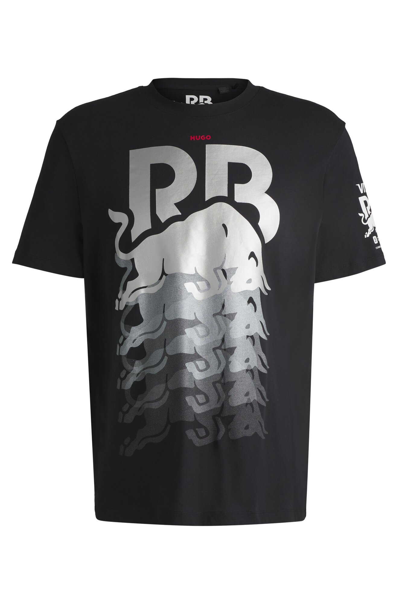 Pánské tričko HUGO s logem týmu formule 1 RB. Černé provedení doplněné stříbrným potiskem Racing Bulls. Bavlna, pohodlné na nošení.
