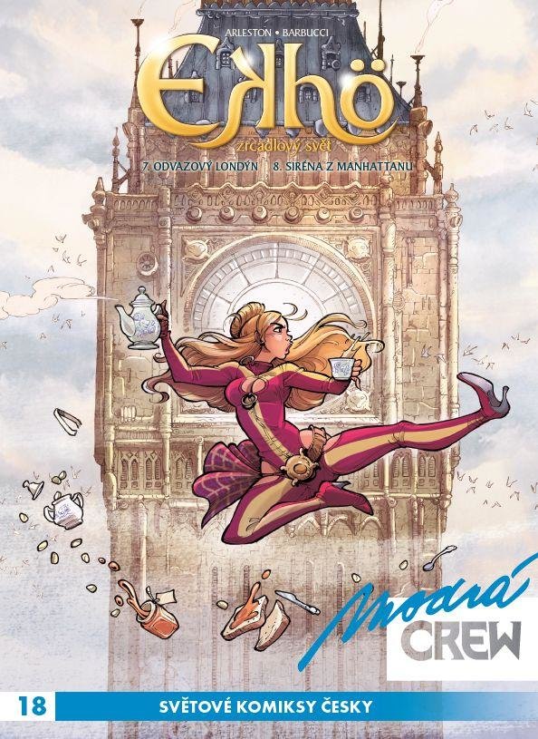 Modrá CREW 18 - Ekhö Zrcadlový svět 7+8 vás vtáhne do napínavého a originálního příběhu, kde místo letadel létají draci a kde se akce mísí s humorem a nečekanými zápletkami. Tento komiksový soubor pokračuje v dobrodružství Mraveny, která vás zavede do nejexkluzivnějších koutů Londýna i New Yorku.