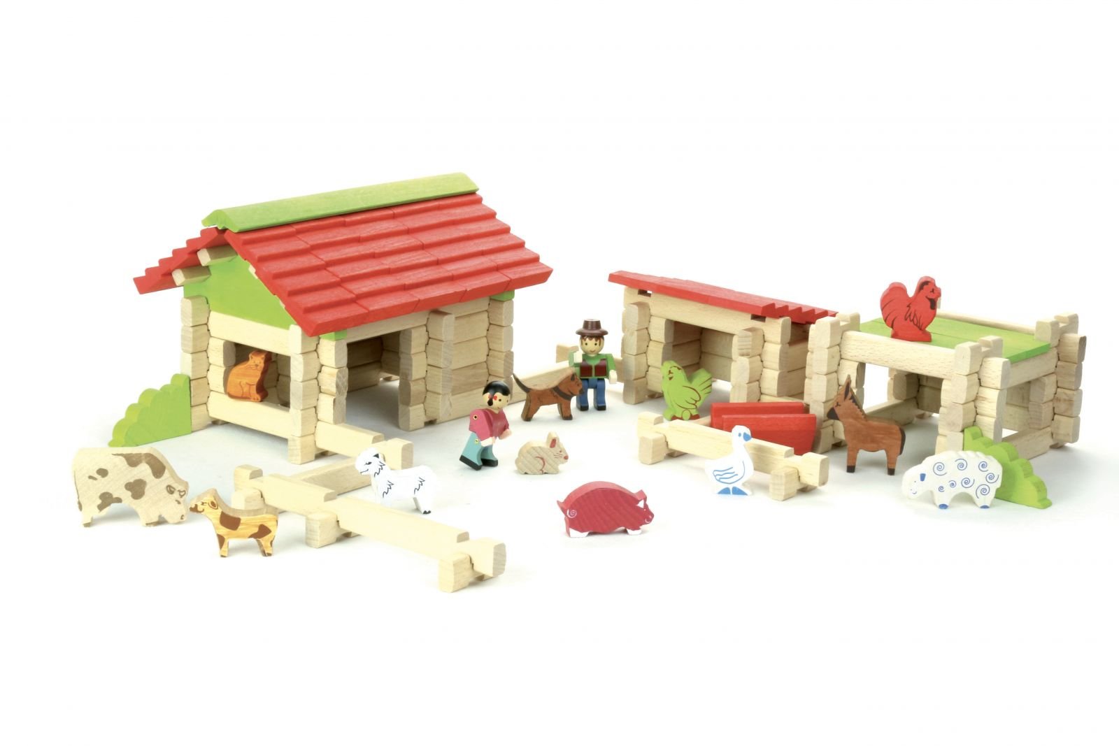 Jeujura Dřevěná stavebnice 120 dílků farma