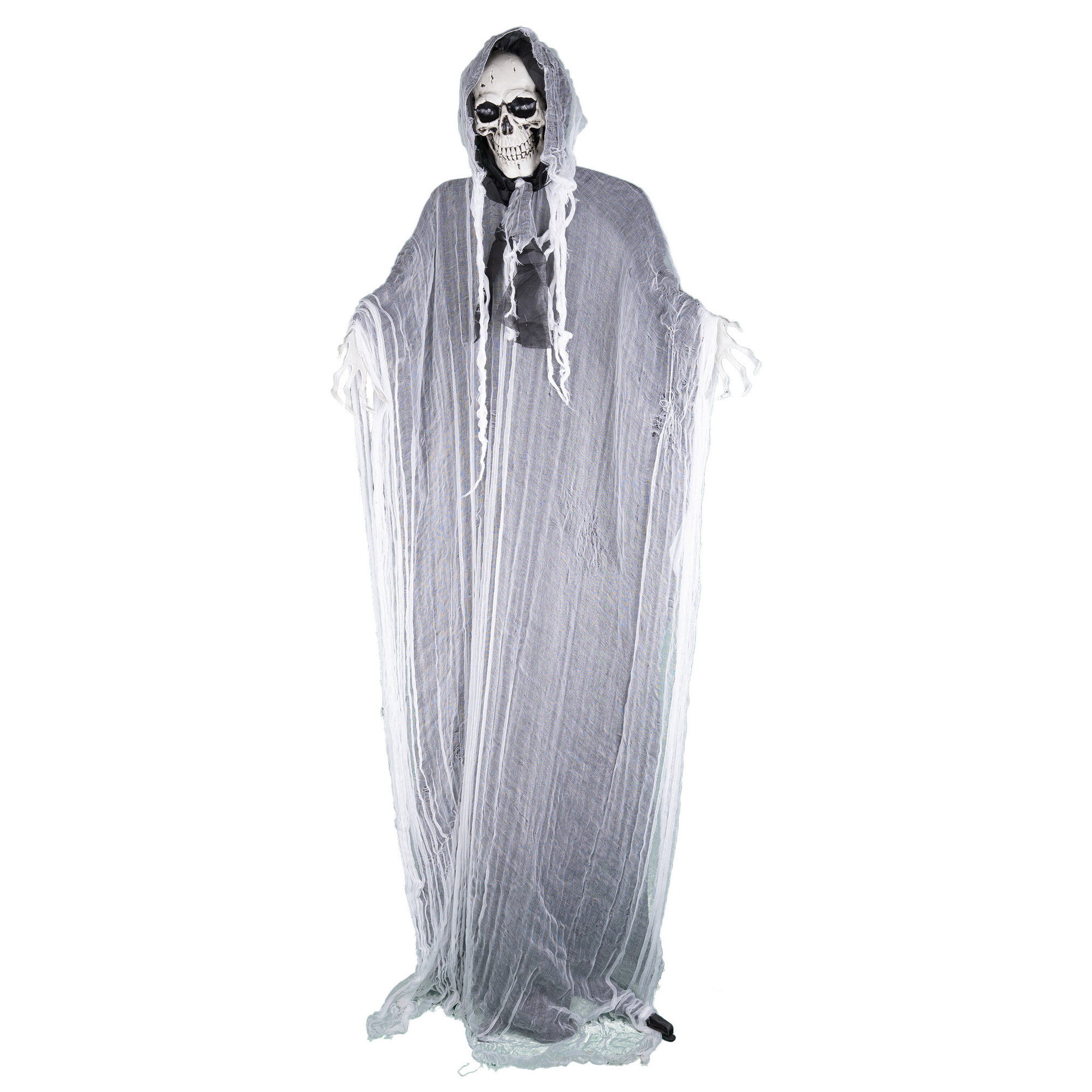 Kostra ducha vysoká 220 cm je výrazná halloweenská dekorace, která okamžitě přitáhne pozornost. Díky své výšce působí impozantně a je ideální pro umístění do vstupních prostor, na zahradu nebo do interiéru, kde vytvoří strašidelnou atmosféru. Perfektní doplněk pro Halloween párty, hororové akce nebo strašidelné domy.