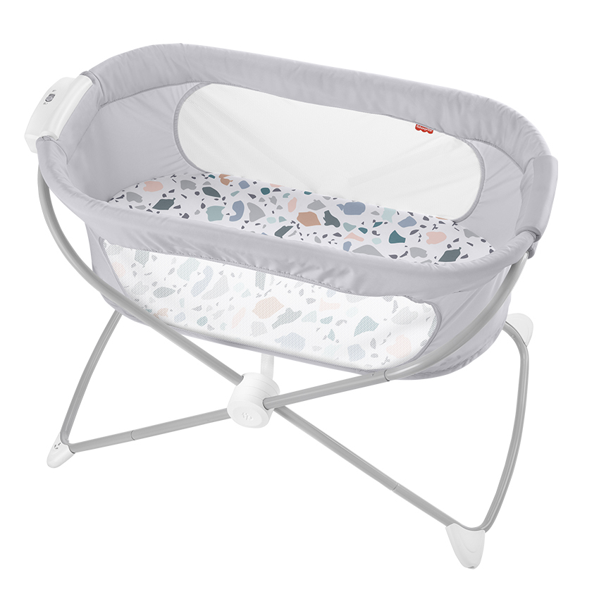 Skládací postýlku Soothing view™ od Fisher-Price® rozhoupete lehkým zatlačením, které pomůže ukolébat vaše děťátko ke spánku. Pro spánek v pevné pozici pak můžete její nohy jednoduše zamknout. Boky přenosné postýlky jsou vyrobené z příjemné síťoviny. Když je čas sbalit se na cesty a vyrazit, postýlku snadno složíte tak, že nakonec měří méně než 10 cm! Používejte pouze pro dítě, které se ještě nezvedá na rukou a kolenou, neumí se samo zvednout nebo sedět.