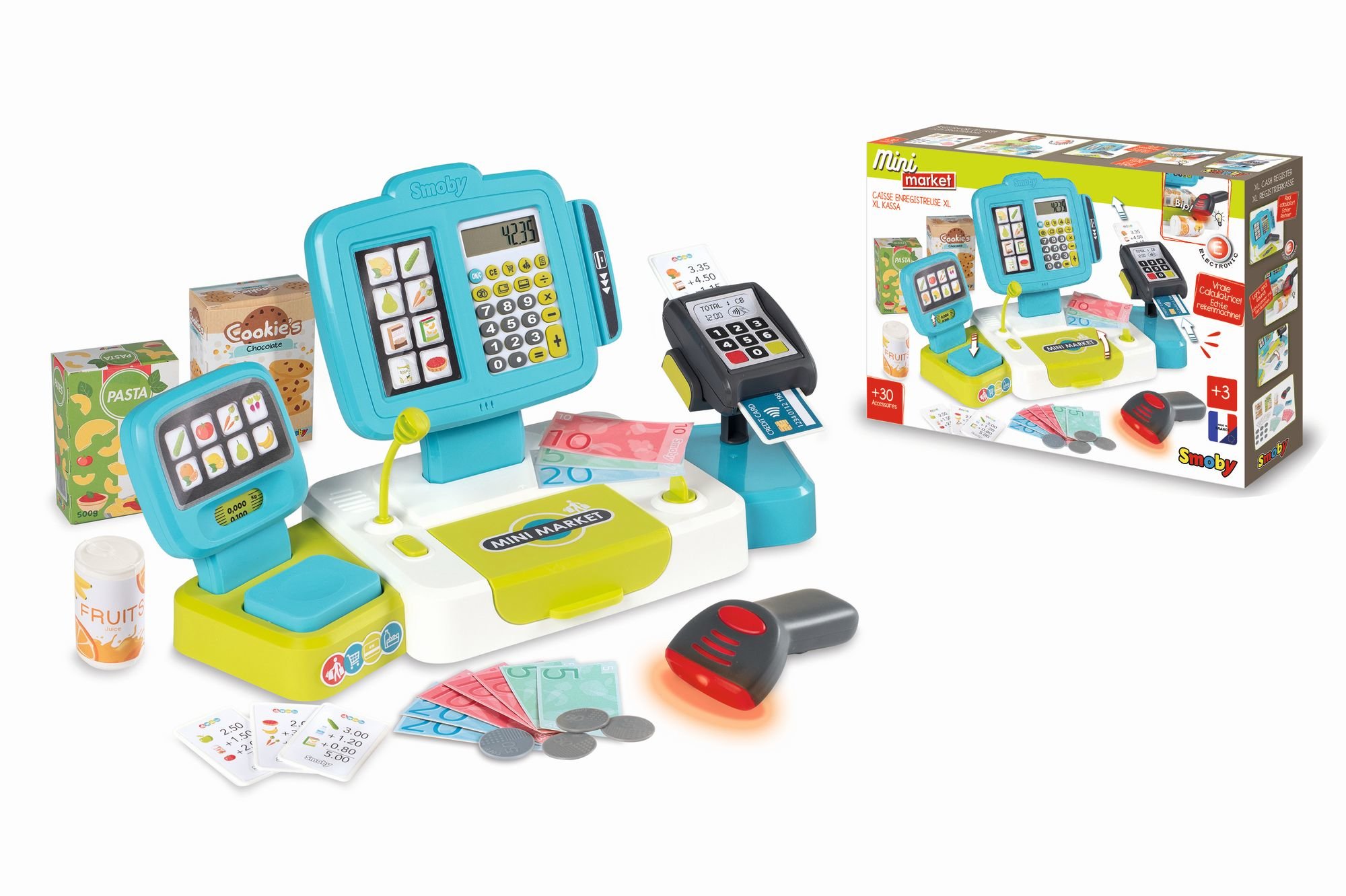 Elektronická pokladna s mechanickou váhou, čtečka karet, skener se světlem a zvukem, dotykový panel pro výběr produktů, displej pro zobrazení ceny, funkční kalkulačka, mikrofon. 30 ks příslušenství.