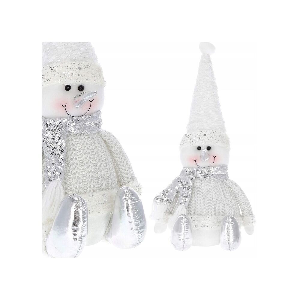 Plyšová dekorace usměvavého sněhuláka o výšce 43cm. Sedící pozice, pletený obleček, stříbrné prvky, stabilní základna, kvalitní na dotek příjemný materiál. Překrásná vánoční dekorace, která se stane ozdobou každého interiéru.