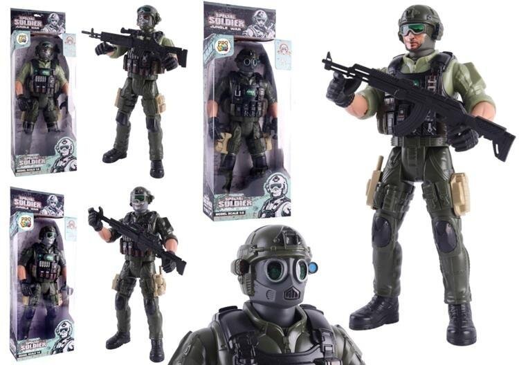- Realistický design zachycuje autentický vzhled vojáka speciálních sil v detailní uniformě s taktickými doplňky.