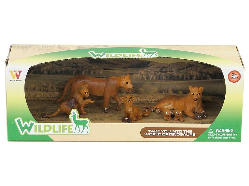 Zwierzęta Zestaw 6 lwów - stado W zestawie są dwa duże lwy i 4 małe lwiątka Figurki wykonane są z plastiku Wymiary opakowania : 30 x 10 x 10 cm Wiek : 3+