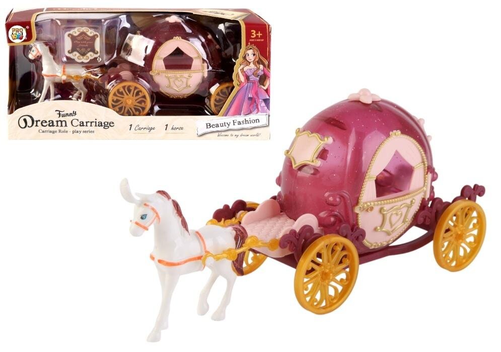 Karoca Księżniczki Beauty Fashion to elegancki zestaw do odgrywania ról, w skład którego wchodzi różowa karoca stylizowana na baśniowy pojazd oraz biały koń z uprzężą. Zabawka nawiązuje do klasycznych motywów bajkowych, zachęcając dzieci do twórczej zabawy narracyjnej. Karoca została wykonana z wysokiej jakości tworzywa sztucznego i posiada przestronne wnętrze, ozdobne detale oraz funkcjonalne koła.