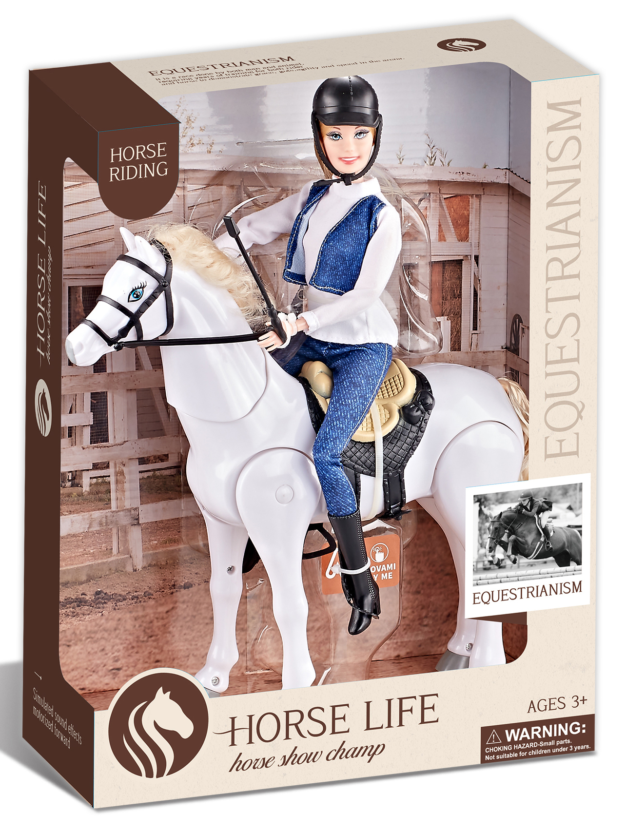 Jezdecký bílý kůň na baterie se zvuky + jezdkyně