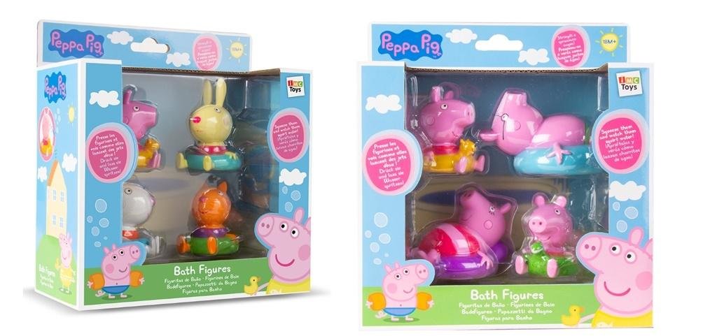 Prasátko Pepa z oblíbeného dětského seriálu velmi rádo dovádí v kalužích. Má také rádo koupání ve vaně, stejně jako vaše malé dítě. Hračka do vody Peppa Pig obsahuje čtyři figurky do koupele, které si ji umí náramně užít. Všichni jsou vybaveni plovacím kruhem, aby se jim dobře plavalo. Figurky lze po stlačení naplnit vodou a pak s nimi stříkat a dovádět. Hračka do vody Peppa Pig figurky do koupele je určena pro děti od 18 měsíců do 7 let.