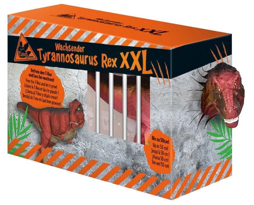 Rosnący Dinozaur T - Rex XXL. Tyrannosaurus Rex był jednym z najbardziej znanych dinozaurów prehistorycznych czasów. Na podstawie niektórych odkryć naukowcy zakładają, że miał on nawet do 13 metrów wysokości i ważył do 9 ton. Mięsożerca miał ogromne zęby i duże gardło, co sugeruje, że był bardziej myśliwym niż padlinożercą. Jak to często bywa, wiele pytań pozostaje bez odpowiedzi i dlatego tak bardzo fascynuje, zwłaszcza chłopców. Umieść figurkę w pojemniku z zimną wodą. Obserwuj, jak rośnie każdego dnia. Król dinozaurów dorasta do 50 cm w ciągu 15 dni! Idealny prezent dla wszystkich fanów dinozaurów. Stwórz własną Dino - Kolekcję z Magicznym Dino - Ręcznikiem, Dino - Ołówkiem, Dino - Tatuażami i Rosnącymi Dino - Jajkami. Doskonała, edukacyjna zabawka dla dzieci w wieku powyżej 3 lat.