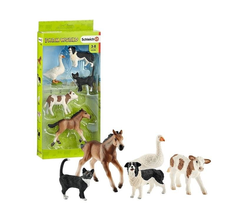 - Sada obsahuje 5 figurek: telátko, husa, psa, kočku a hříbě.