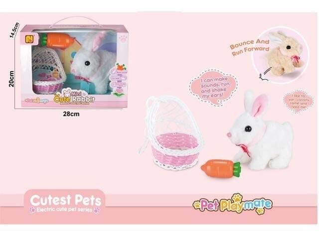 KRÓLICZEK WIELKANOCNY:- Zawiera koszyczek- Marchewkę- Króliczek odbija się i biegnie do przodu- Wymagane jest użycie baterii 2x1,5V AA- Króliczek przeznaczony jest dla dzieci od 3 roku życia