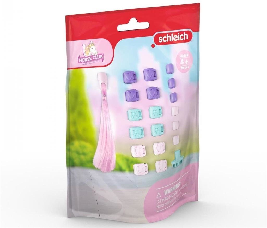 Nowy świat zabaw Schleich Horse Club Sofia\'s Beauties zawiera także różne akcesoria do włosów, które zamienią każdą końską grzywę w kolorowy element przyciągający wzrok.