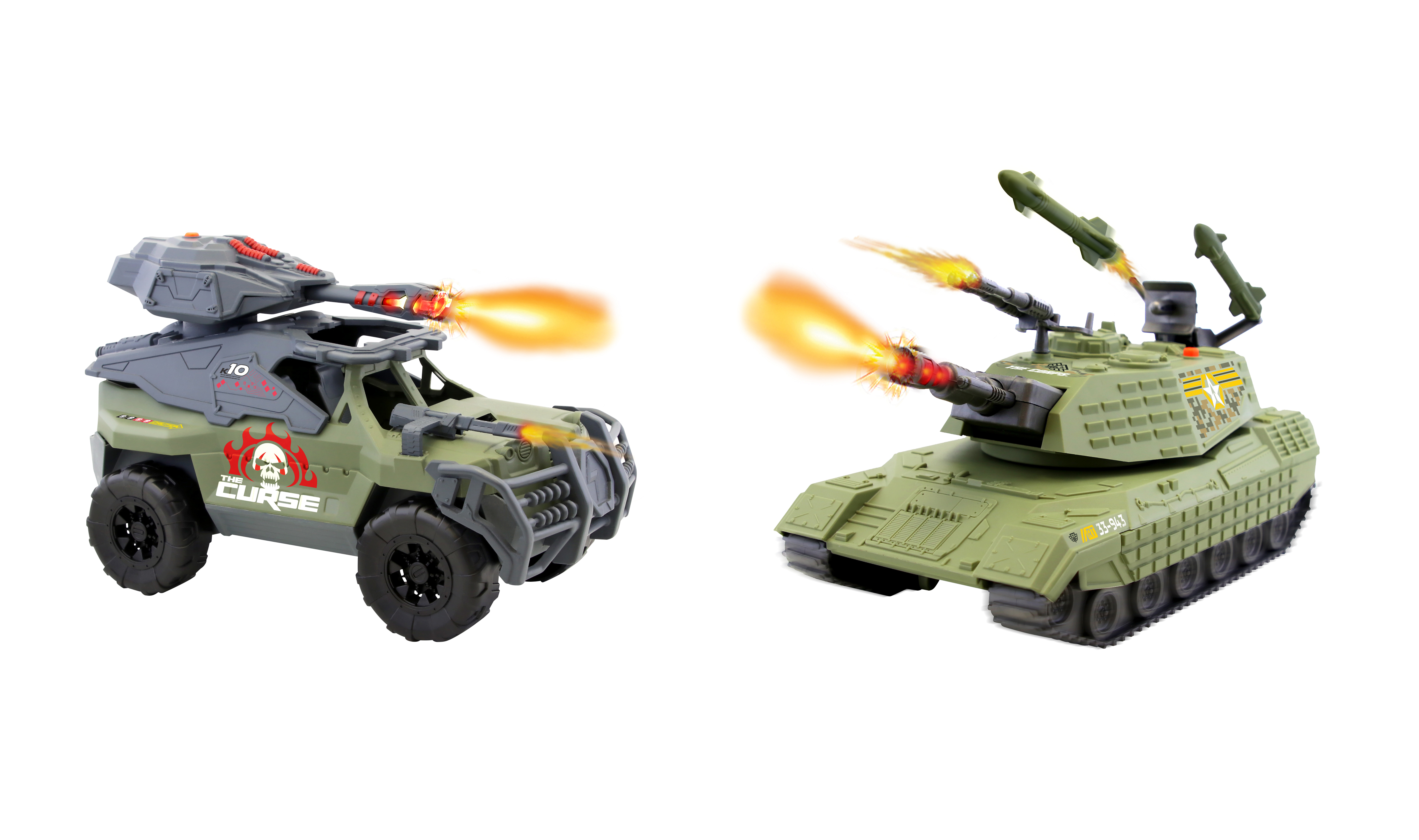 The Corps vojenská technika. Velikost tanku 27 cm. Světelné a zvukové efekty. 3xAA baterie pro tank, 2xAA baterie pro útočné vozidlo jsou součástí. 2 varianty - tank, útočné vozidlo. číst celé