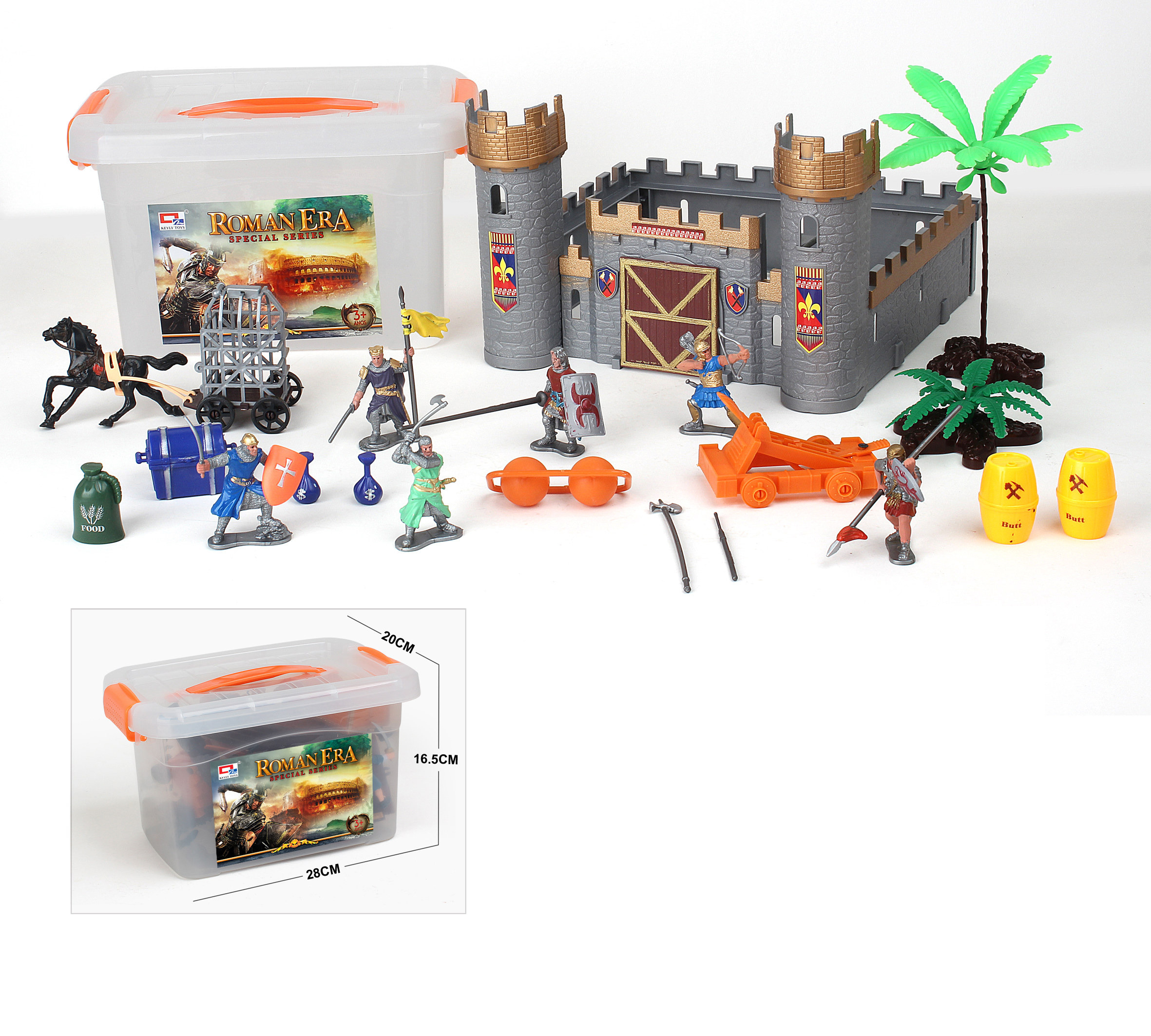 Hrad s figurkami. Součástí je hrad, 6 figurek postaviček, koně, zbraně a další příslušenství. číst celé