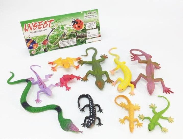 | Zestaw 10 kolorowych płazów (żaby) i gadów (jaszczurki). Produkt zapakowany w przezroczysty worek. Produkt przeznaczony dla dzieci od 3 lat. Podane wymiary są wymiarami opakowania. |