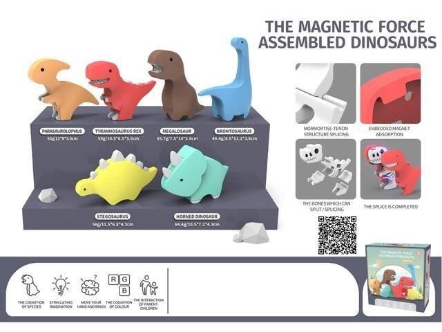 Każdy magnetyczny dinozaur posiada swój własny szkielet, który można rozmontowywać. Magnetyczne dinozaury przeznaczone są dla dzieci powyżej 3 roku życia
