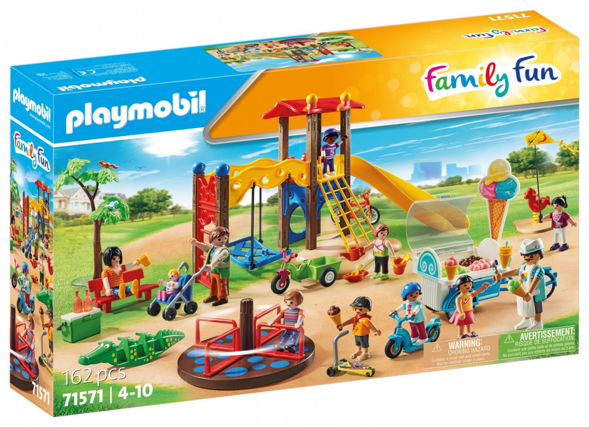 Zestaw PLAYMOBIL Family Fun Set 71571 zawiera nie tylko duży plac zabaw z mnóstwem urządzeń do zabawy, ale także 7 figurek dzieci, 3 figurki dorosłych i figurkę niemowlaka. Całość zapewni mnóstwo zabawy!