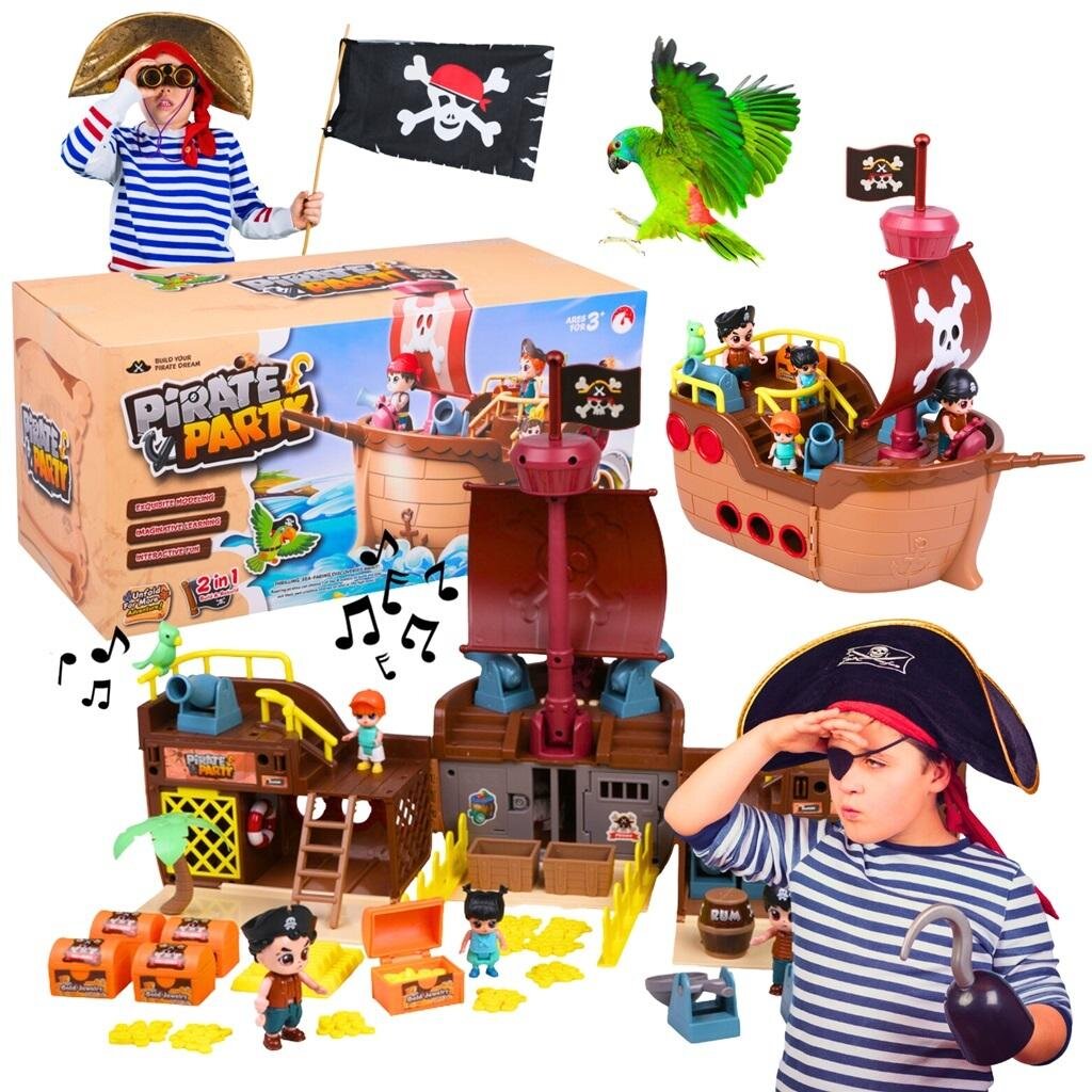 Po rozłożeniu statku ukazuje się wiele detali, których nie powinno zabraknąć u prawdziwych piratów. Pod pokładem znajdują się, między innymi, cela dla więźnia, a obok niej - specjalnie miejsce na zapasy żywności. Wśród akcesoriów znajdują się armaty oraz katapulty, by bronić załogę przed intruzami, a także kufry ze złotem, których lepiej nie spuszczać z oczu. Małym piratom, we wszystkich morskich podróżach, towarzyszy papuga, którą umieścić można na barierce, by wypatrywała nadchodzących niebezpieczeństw.