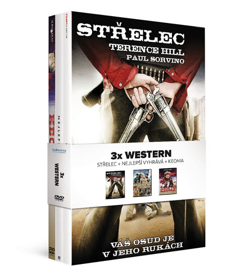 3x Western Střelec Nejlepší vyhrává Keoma Střelec Doc West (Terence Hill) přijíždí do městečka Holysands, kde vyhlašuje velkolepý turnaj v pokeru s nadějí, že mu jeho hráčské schopnosti vynesou potřebné peníze na stavbu nemocnice. Do městečka se sjíždějí pokerové legendy z celé Ameriky, včetně Westova dávného rivala, jehož přítomnost vyvolá řadu problémů… Nejlepší vyhrává Doc West (Terence Hill) měl štěstí v pokeru, jeho výhru však ukradli bandité. Jeho snaha dopadnout lupiče se ale poněkud zvrtne a on sám skončí ve vězení… Keoma Keoma (Franco Nero), indiánský míšenec, se vrací po občanské válce domů. Jeho bratři jej však kvůli jeho původu nevítají právě s otevřenou náručí a spiknou se proti němu. Keoma se bude muset vypořádat nejen s nimi, ale i s bandou desperátů, která terorizuje celé okolí. A jeho pomsta bude řádně krvavá!