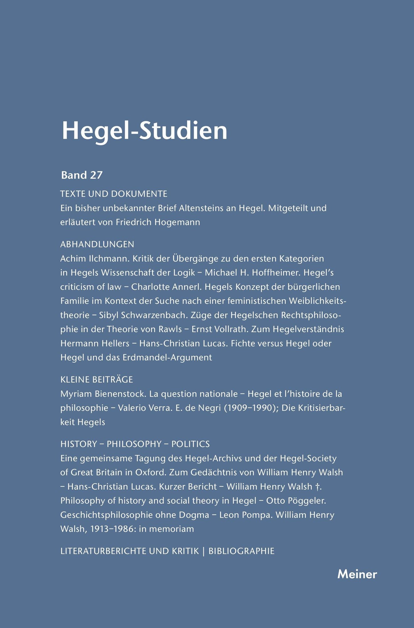 Hegel-Studien / Hegel-Studien Band 27 (1992) (německy)