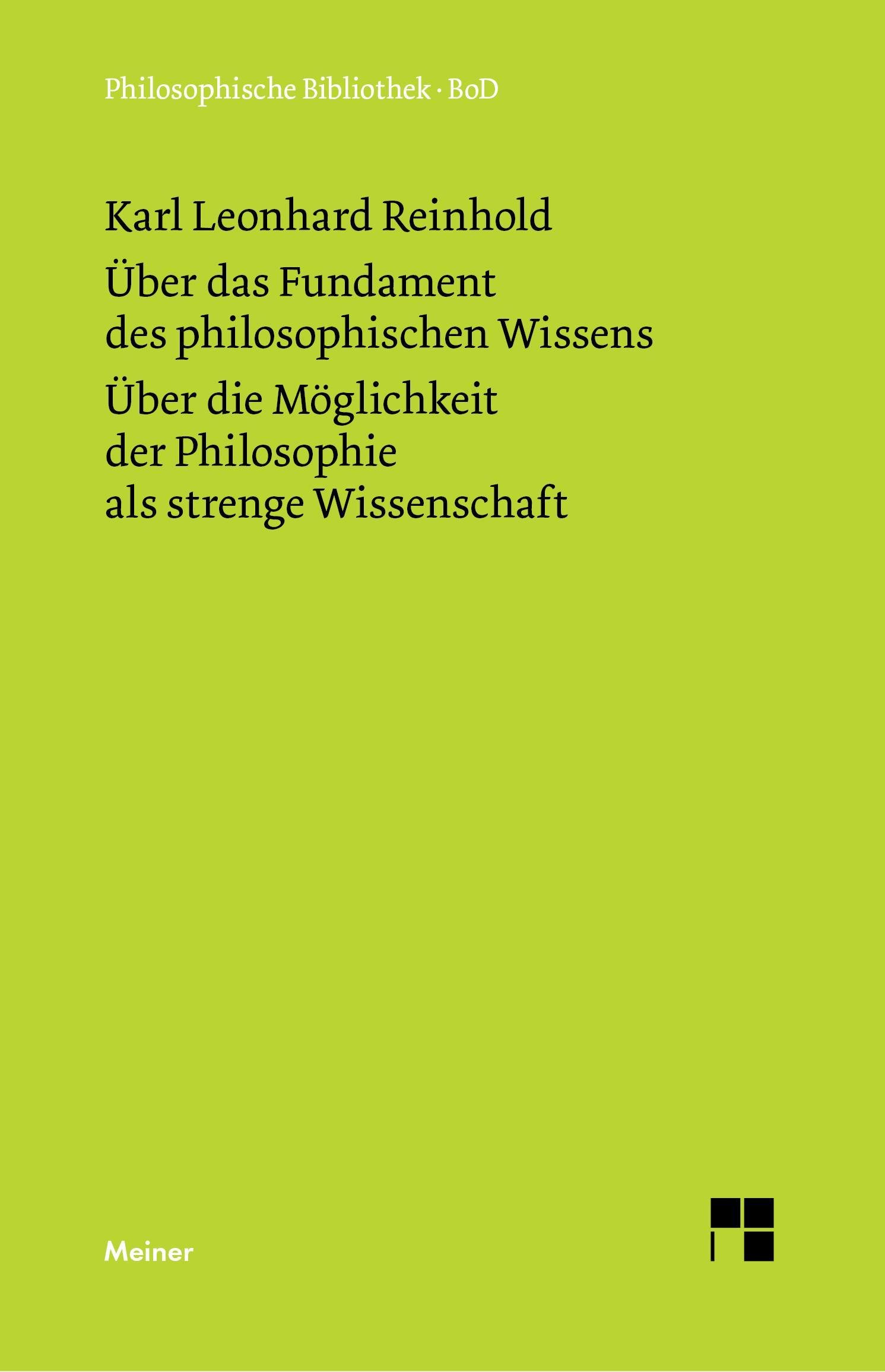 Über das Fundament des philosophischen Wissens (1791). Über die Möglichkeit der Philosophie als strenge Wissenschaft (1790) (německy)