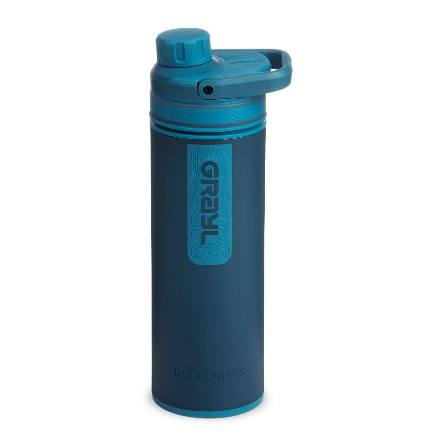 Filtračná fľaša Grayl UltraPress Purifier Bottle - Forest Blue je ideálnym spoločníkom na výlety do prírody. Behom 10 sekúnd ňou možno získať pitnú vodu vyčistenú od vírusov, baktérií, prvokov, chemikálií, ťažkých kovov aj pevných častíc.
