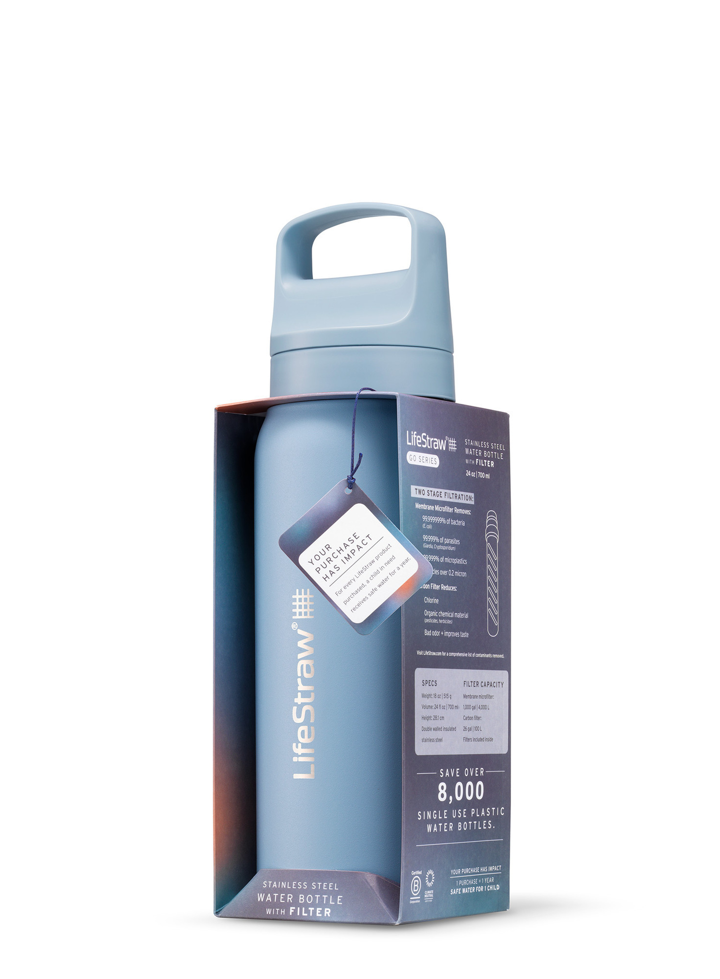 Vlastnosti:- Model, ktorý sa dokonale osvedčí pri outdoorových aktivitách;- Využijete ju ako pri trekingu a kempovaní, tak pri bushcraftových výpravách;- Membránový mikrofilter, ktorý chráni pred E.coli, salmonelou, parazitmi ako Giardia a Cryptosporidium, mikroplasty, pieskom, nečistotami a zákalom;- Filter znižuje obsah chlóru a nepríjemných pachov a zlepšuje chuť vody;- Membránový filter umožňuje prefiltrovať približne 4 000 litrov vody;- Membránový filter spĺňa normu NSF 42 pre redukciu chlóru a normy US EPA a NSF P231 pre pitnú vodu na odstránenie baktérií a parazitov;- Výrobky Lifestraw sa môžu pochváliť certifikáciami B Corp a Climate Neutral;- Konštrukcia neobsahuje BPA;- Fľaša je vyrobená z nerezovej ocele;- Objem 700 ml;- Fľaša je možné po vybratí filtra umývať v umývačke riadu.