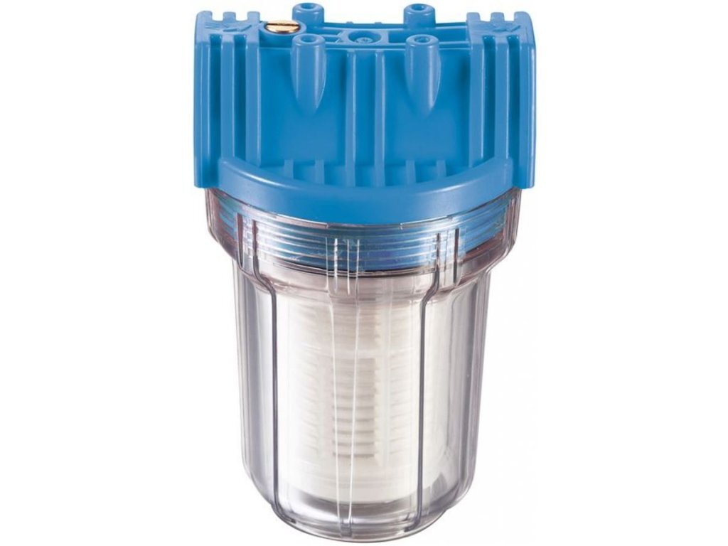 Konstrukce: průhledná nádobka z PVC, omyvatelné filtrační kartuše, včetně 2 závitových redukcí.