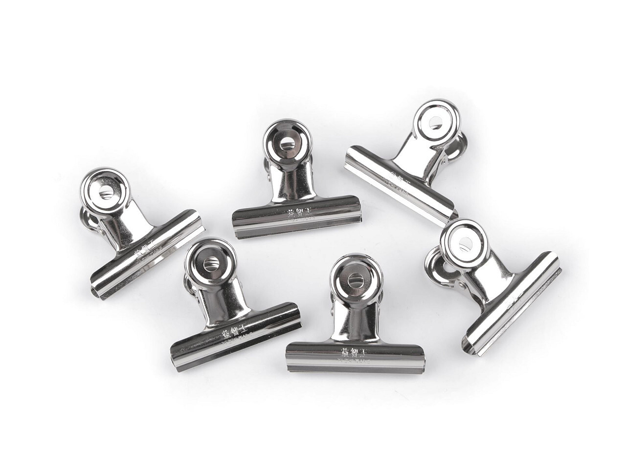 Kovový klip s pevnou pružinou a silným stiskem využijete mnoha různými způsoby. Švadlenkám se bude hodit na sepnutí látek, v domácnosti se dá využít například jako svorka na uzavření větších pytlů. Díky dírce (Ø5,5 mm) jej můžete zavěsit. Poslouží tak třeba na zavěšení menších obrázků. V kanceláři se dá využít na sepnutí a zavěšení různých dokumentů.