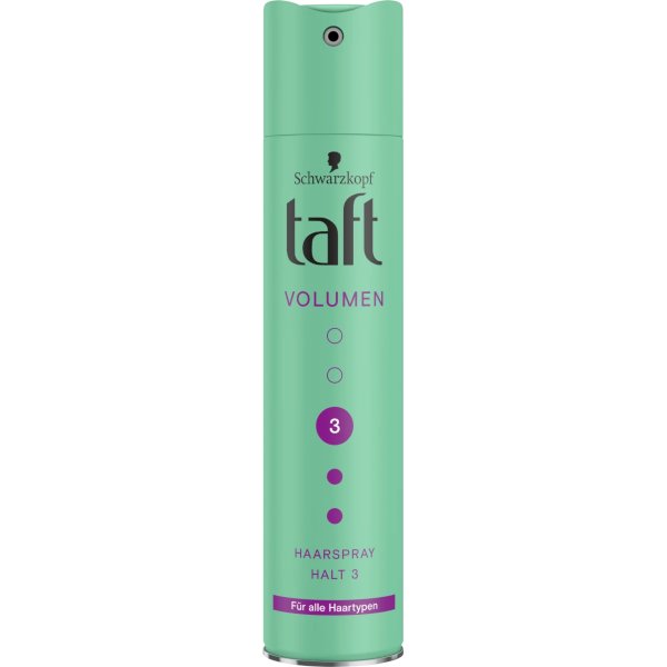 Taft lak na vlasy - Volumen - síla 3 - 250mlTaft Volume Hairspray s fixací 3 pro všechny typy vlasů dodává objem a zároveň zlepšuje přirozené natočení vlasů. Drží až 24 hodin bez přilepení nebo zanechání zbytků. Zároveň se snadno vyčesává. Tento lak na vlasy pomáhá chránit vlasy před vysoušením, aniž by je zatěžoval. Dodává vlasům objem a pevnost a pomáhá je chránit před vlhkostí a větrem. Laky na vlasy Taft používají veganské složení a neobsahují živočišné složky. Aplikujte ze vzdálenosti 30cm.