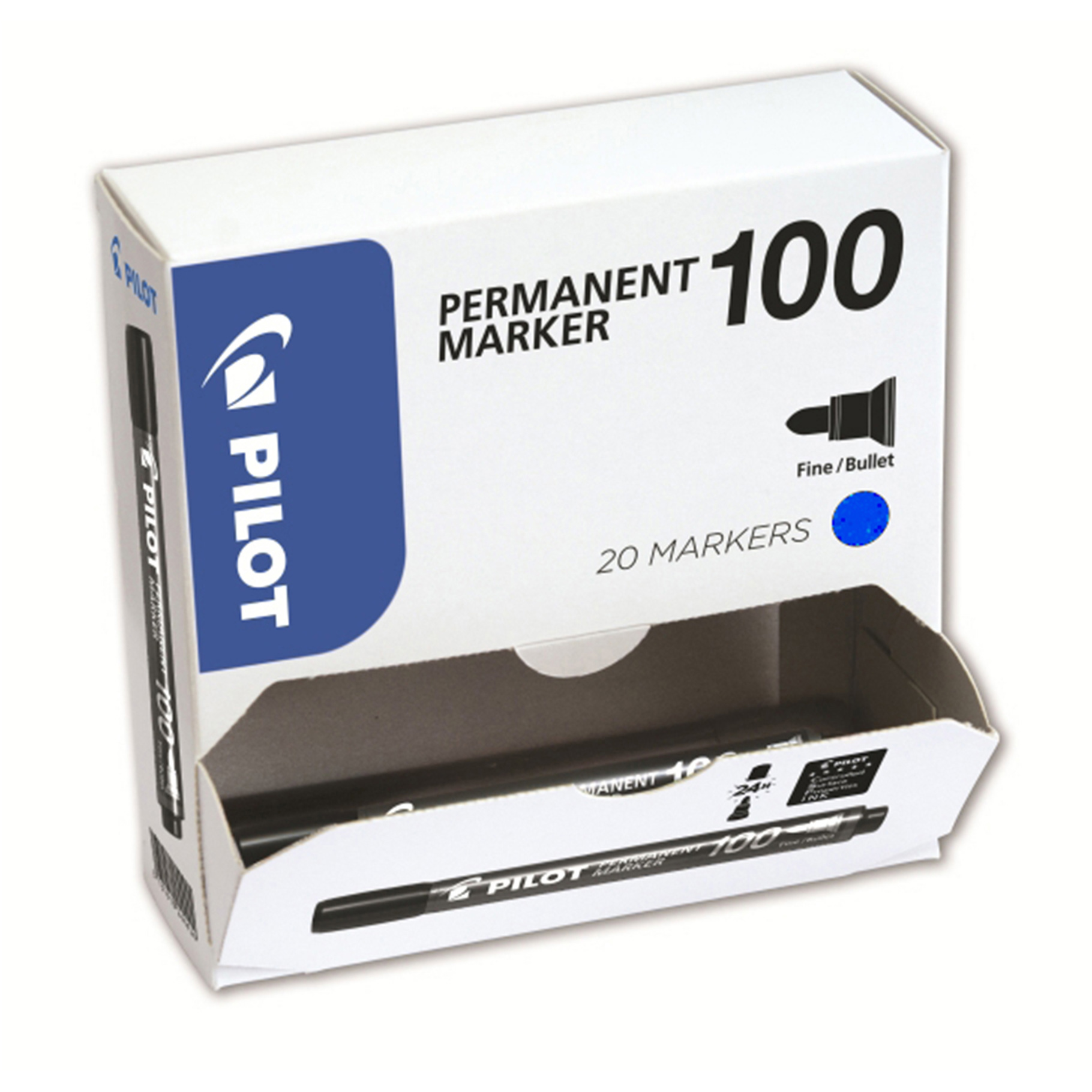 Přijměte výzvu Mezi profesionály: je zde zcela nový permanentní popisovač Pilot Permanent Marker! Jeho poslání? Psát na všechno: dřevo, kov, plast ... a všude. Jeho výhoda? Odolá všemu: vodě, světlu, chladu, teplu ... a zůstává výkonný, i když jej necháte celý den bez víčka. Jeho silnou stránkou je také design! Dostupný ve čtyřech barvách a dvou různých verzích, Permanent Marker 100 s jemným kulatým hrotem je stejně výkonný jako Permanent Marker 400 se širokým zkoseným hrotem ... Vyberte si svůj styl! Nový Pilot Permanent Marker má všechny kvality profesionálů, které chcete s sebou každý den: seriózní, spolehlivé a vždy připravené na výzvu!20 x Permanent Marker 100 - Popisovač - Modrá - Tenký hrot (F)