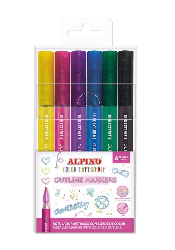 Alpino Balení se 6 kovovými obrysovými fixy Color Experiences barevným okrajem.