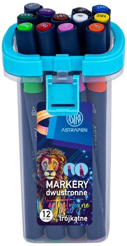 Markery artystyczne trójkątne dwustronne Pen 12-kol. - pędzelkowa i ścięta końcówka, Astra